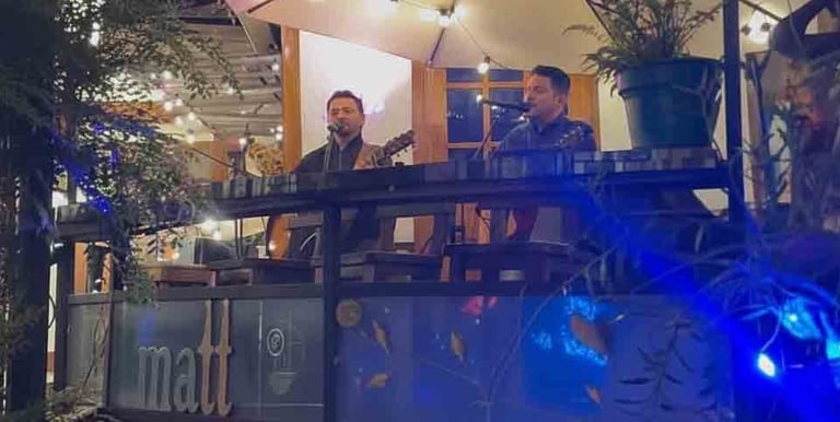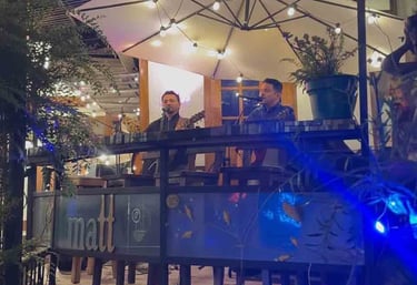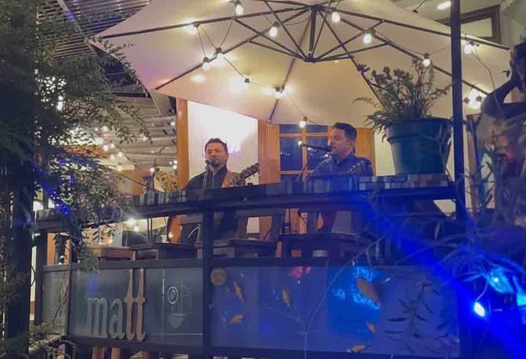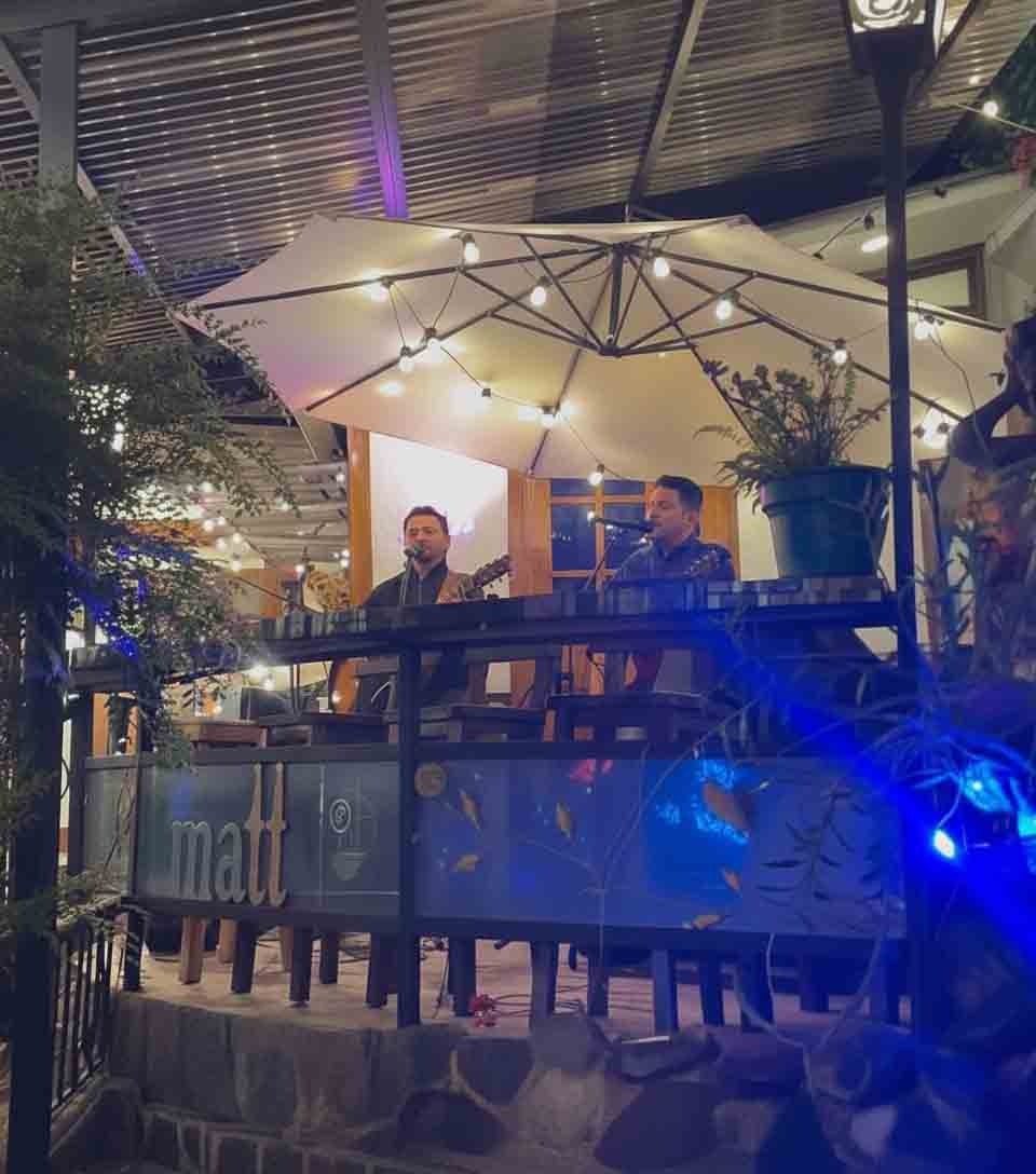 Al caer la noche, la música en vivo transforma el lugar en un escenario lleno de emoción y magia.