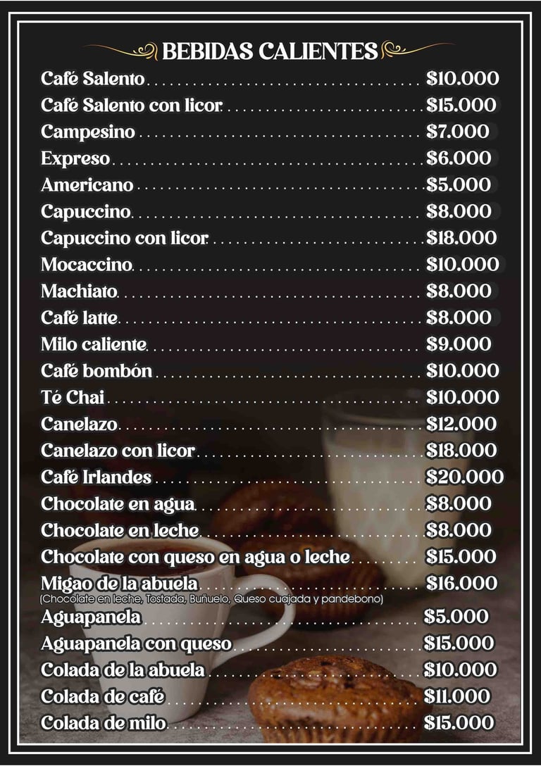 Café Salento, cappuccino, mocaccino, canelazo y café irlandés